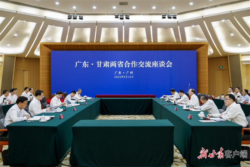 廣東省領(lǐng)導(dǎo)陳建文、王曦、郭永航,甘肅省領(lǐng)導(dǎo)張曉強、張偉、陳得信出席座談會。(記者張富貴?孟捷)