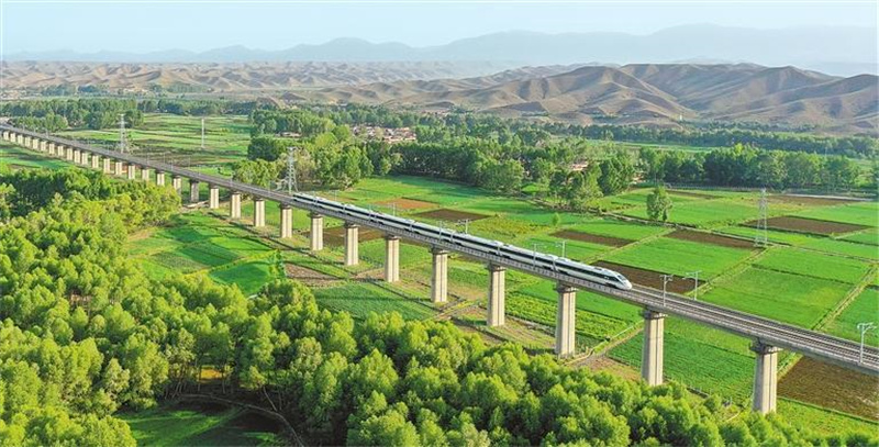 列車在蘭張高鐵蘭武段行駛。蘭州至張掖高鐵中川機(jī)場至武威東段于2024年6月開通運(yùn)營。資料圖
