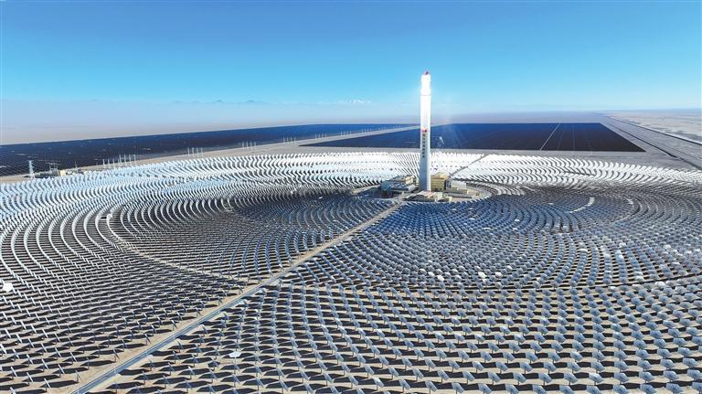 在國家第二批“沙戈荒”基地唯一“光熱+”試點示范項目基地——中國綠發(fā)金塔多能互補基地項目10萬千瓦光熱電站,年均可為電網(wǎng)輸送14.5億千瓦時清潔電力,可供約70萬戶家庭全年使用,每年可節(jié)約標準煤約48萬噸,減少二氧化碳排放約136萬噸;