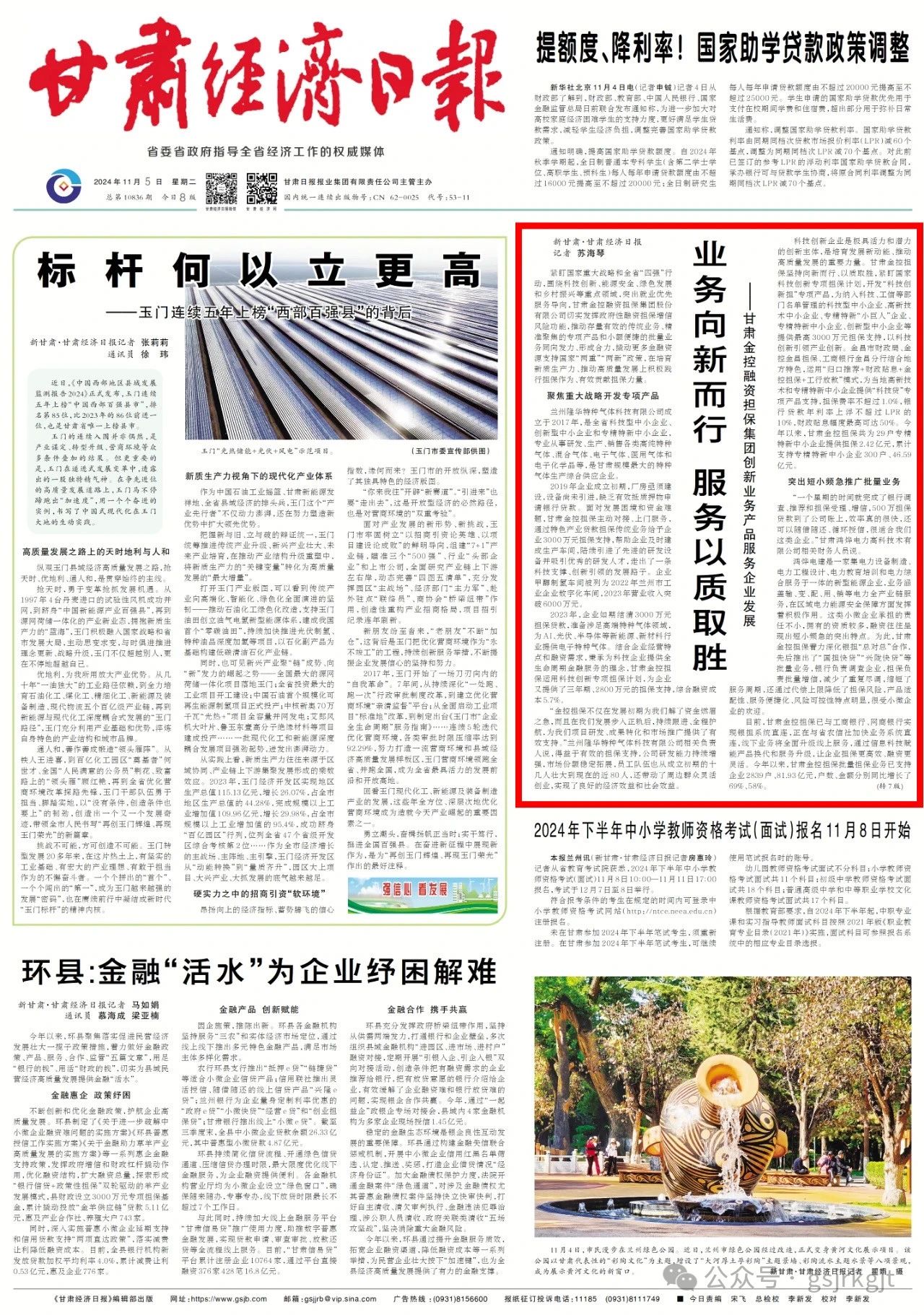 緊盯國家重大戰(zhàn)略和全省“四強(qiáng)”行動(dòng),圍繞科技創(chuàng)新、能源安全、綠色發(fā)展和鄉(xiāng)村振興等重點(diǎn)領(lǐng)域,突出就業(yè)優(yōu)先服務(wù)導(dǎo)向,甘肅金控融資擔(dān)保集團(tuán)股份有限公司切實(shí)發(fā)揮政府性融資擔(dān)保增信風(fēng)險(xiǎn)功能,推動(dòng)存量有效的傳統(tǒng)業(yè)務(wù)、精準(zhǔn)聚焦的專項(xiàng)產(chǎn)品和小額便捷的批量業(yè)務(wù)同向發(fā)力、形成合力,撬動(dòng)更多金融資源支持國家“兩重”“兩新”政策,在培育新質(zhì)生產(chǎn)力、推動(dòng)高質(zhì)量發(fā)展上積極踐行擔(dān)保作為、有效貢獻(xiàn)擔(dān)保力量。