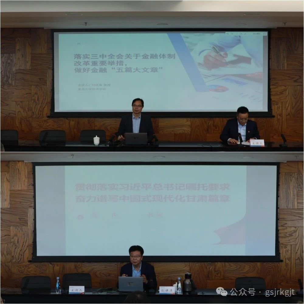 此次培訓(xùn)通過線上線下相結(jié)合的方式進(jìn)行。培訓(xùn)期間,全體學(xué)員在線學(xué)習(xí)了黨的二十屆三中全會精神解讀、構(gòu)建高水平社會主義市場經(jīng)濟(jì)體制、健全推動經(jīng)濟(jì)高質(zhì)量發(fā)展體制機(jī)制、提高黨對進(jìn)一步全面深化改革、推進(jìn)中國式現(xiàn)代化的領(lǐng)導(dǎo)水平等內(nèi)容,邀請復(fù)旦大學(xué)經(jīng)濟(jì)學(xué)院劉慶富教授從“黨的二十屆三中全會關(guān)于金融體制改革的重要舉措解讀、做好金融五篇大文章、異常交易的監(jiān)管”三個(gè)大方面,對中國金融體制改革的歷程、成效與經(jīng)驗(yàn),進(jìn)一步深化金融體制改革的方向與重點(diǎn),“金融五篇大文章”的背景、內(nèi)涵與產(chǎn)業(yè)與落地,金融大數(shù)據(jù)風(fēng)險(xiǎn)管理等內(nèi)容作了全面深入的輔導(dǎo)。邀請甘肅省委黨校康民教授通過“講好黃河‘故事’做足黃河文章,構(gòu)建現(xiàn)代產(chǎn)業(yè)體系、發(fā)展新質(zhì)生產(chǎn)力,貫徹三中全會精神、進(jìn)一步全面深化改革,加強(qiáng)文化遺產(chǎn)保護(hù)傳承、推動文化創(chuàng)新發(fā)展,加強(qiáng)社會建設(shè)和治理、提升基層治理效能,毫不放松堅(jiān)持黨的領(lǐng)導(dǎo)、加強(qiáng)黨的建設(shè)”六個(gè)方面,對學(xué)習(xí)貫徹習(xí)近平總書記視察甘肅重要講話重要指示精神,作了脈絡(luò)清晰、深入細(xì)致的專題解讀。