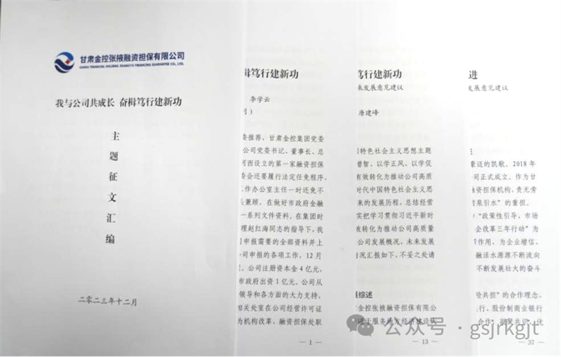 一、開(kāi)展一次主題征文活動(dòng)為切實(shí)將主題教育激發(fā)的動(dòng)力有效轉(zhuǎn)化為推動(dòng)高質(zhì)量發(fā)展的實(shí)績(jī),金控張掖擔(dān)保組織全員開(kāi)展了“我與公司共成長(zhǎng),奮楫篤行建新功”主題征文活動(dòng)。征文通知發(fā)出后,公司領(lǐng)導(dǎo)班子帶頭,積極踴躍投稿,全員結(jié)合五年來(lái)的工作實(shí)際談感悟、說(shuō)想法、講實(shí)績(jī)、找不足、獻(xiàn)良策。征集到的13篇稿件既有高度又有深度,達(dá)到了共話成就、共謀發(fā)展、共同進(jìn)步的預(yù)期效果。