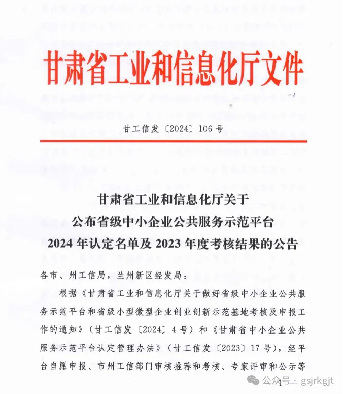 近日,甘肅省工信廳公布了《關于公布省級中小企業(yè)公共服務示范平臺2024年認定名單及2023年度考核結果的公告》,甘肅股權交易中心在128家省級中小企業(yè)公共服務示范平臺考核中榮獲“優(yōu)秀”等次。