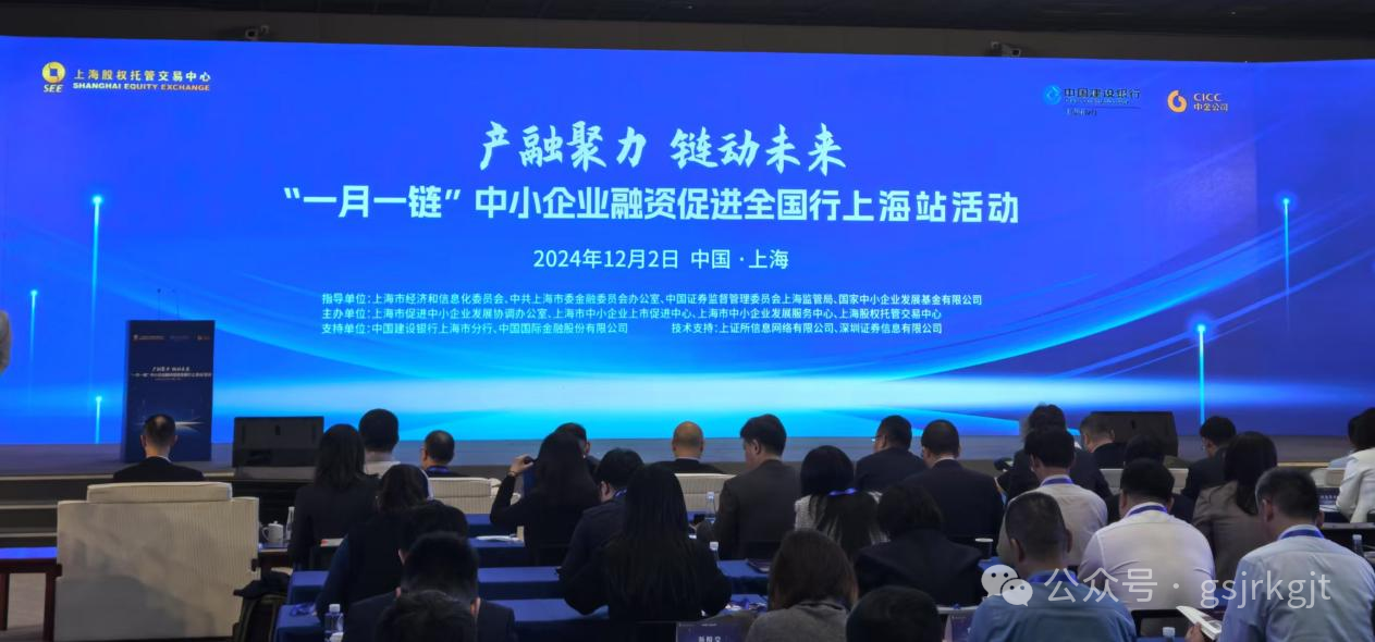 近日,“一月一鏈” 中小企業(yè)融資促進全國行上海站活動開啟。全國 6 家專精特新中小企業(yè)在活動中進行了項目路演推介,其中甘肅股權(quán)交易中心“專精特新專板”掛牌企業(yè)蘭州大成鐵路信號股份有限公司和甘肅一德新能源設(shè)備有限公司成功入圍 2024 年全國專精特新中小企業(yè) “一月一鏈” 優(yōu)秀投融資路演項目。