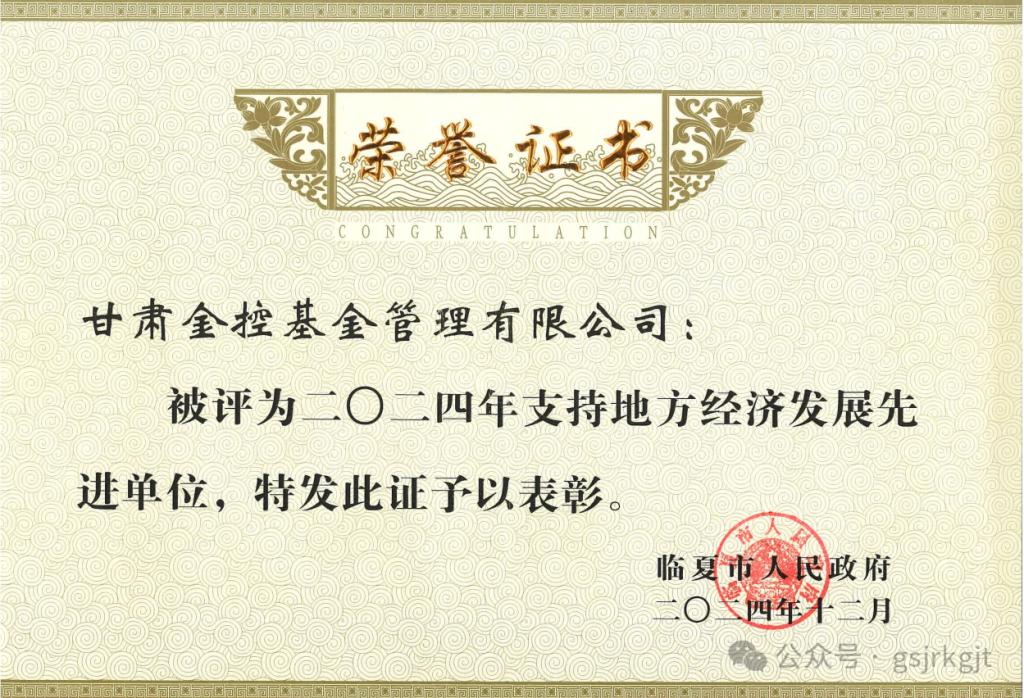近日,甘肅金控基金管理有限公司被臨夏市政府授予“2024年度支持地方經(jīng)濟(jì)發(fā)展先進(jìn)單位”榮譽(yù)稱號(hào),這是地方政府對(duì)金控基金在服務(wù)實(shí)體經(jīng)濟(jì)、支持地方產(chǎn)業(yè)和促進(jìn)縣域經(jīng)濟(jì)高質(zhì)量發(fā)展等方面工作的高度肯定,也是對(duì)金控基金和市州擔(dān)保公司業(yè)務(wù)協(xié)同發(fā)展的激勵(lì)。