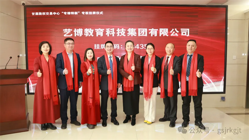 一元復(fù)始,歲華新至。2026年開(kāi)篇之月,藝博教育科技集團(tuán)有限公司(以下簡(jiǎn)稱(chēng)“藝博集團(tuán)”)在甘肅省“專(zhuān)精特新”專(zhuān)板掛牌儀式圓滿(mǎn)舉行。藝博集團(tuán)董事長(zhǎng)盧永鋒及甘肅股權(quán)交易中心主要負(fù)責(zé)任人出席儀式并致辭,藝博集團(tuán)總經(jīng)理魏明雪及核心骨干共40余人參加此次活動(dòng)。