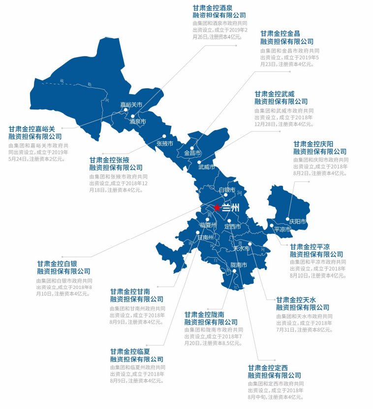 甘肅金控融資擔(dān)保集團(tuán)股份有限公司是由甘肅金融控股集團(tuán)有限公司出資、經(jīng)甘肅省地方金融監(jiān)督管理局核準(zhǔn)而設(shè)立的省級(jí)政府性融資擔(dān)保機(jī)構(gòu),甘肅省人民政府確定的省級(jí)融資再擔(dān)保機(jī)構(gòu),國(guó)家融資擔(dān)?;鸷灱s合作單位。
