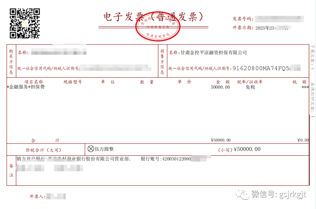 近日,甘肅金控平?jīng)鋈谫Y擔(dān)保有限公司通過甘肅省電子稅務(wù)局平臺(tái)開具了首張全面數(shù)字化的電子發(fā)票(以下簡稱“數(shù)電票”),并獲受票方公司順利接收。此次“數(shù)電票”的線上全流程實(shí)踐,邁出了票據(jù)無紙化重要的一步,對(duì)公司財(cái)務(wù)數(shù)字化管理的探索具有重大意義。